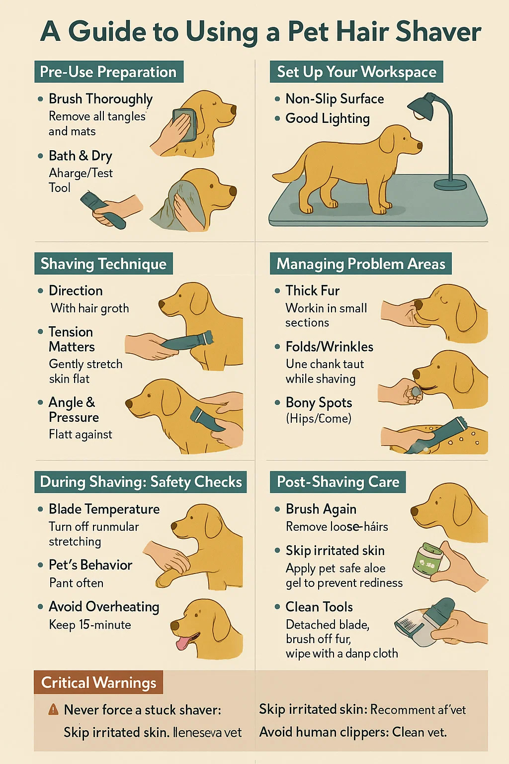 Pomocou a holiaci strojčekom pre domáce zvieratá Bezpečne a efektívne vyžaduje prípravu, techniku a post-starostlivosť. Tu je podrobný, podrobný sprievodca: